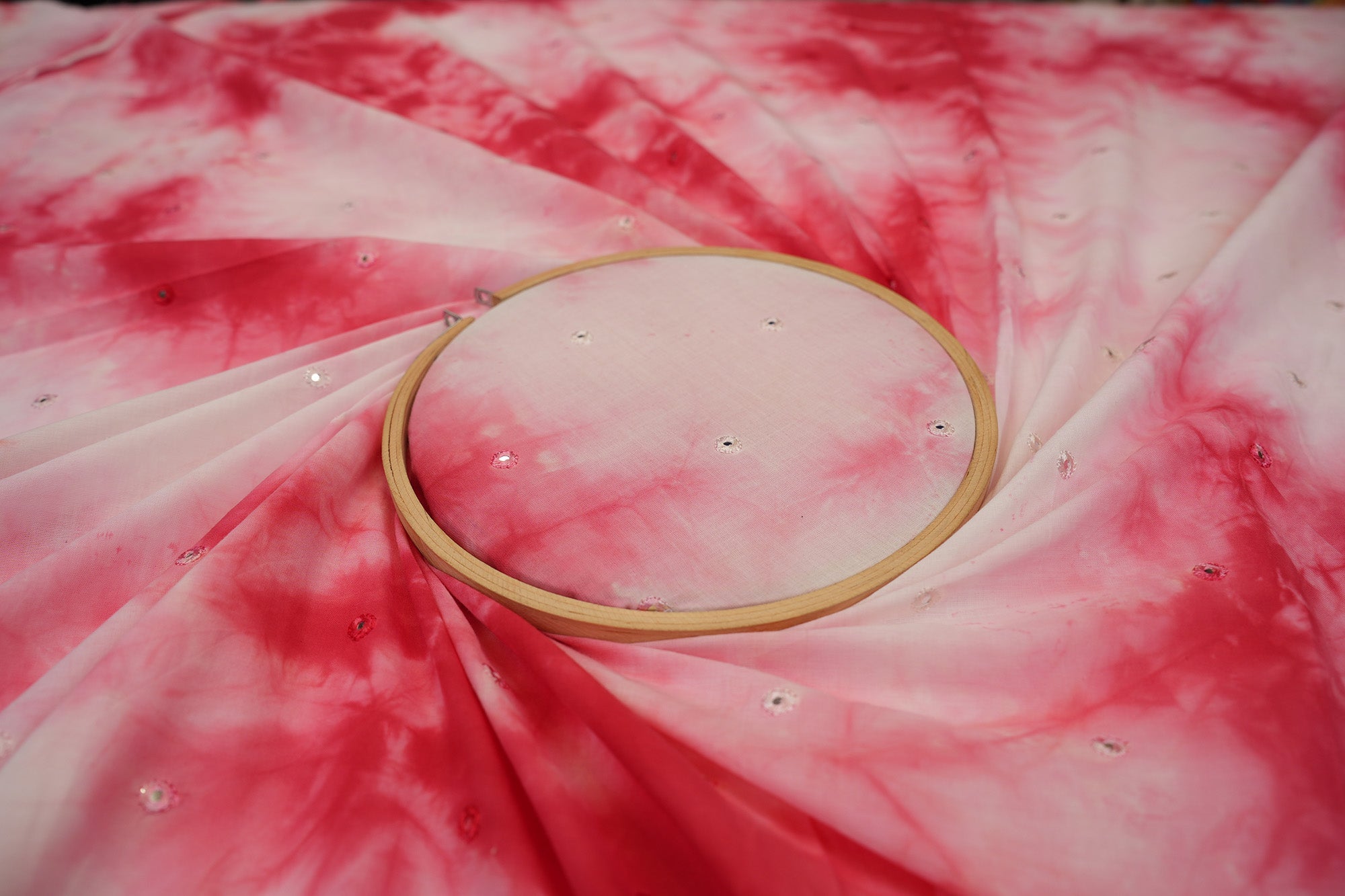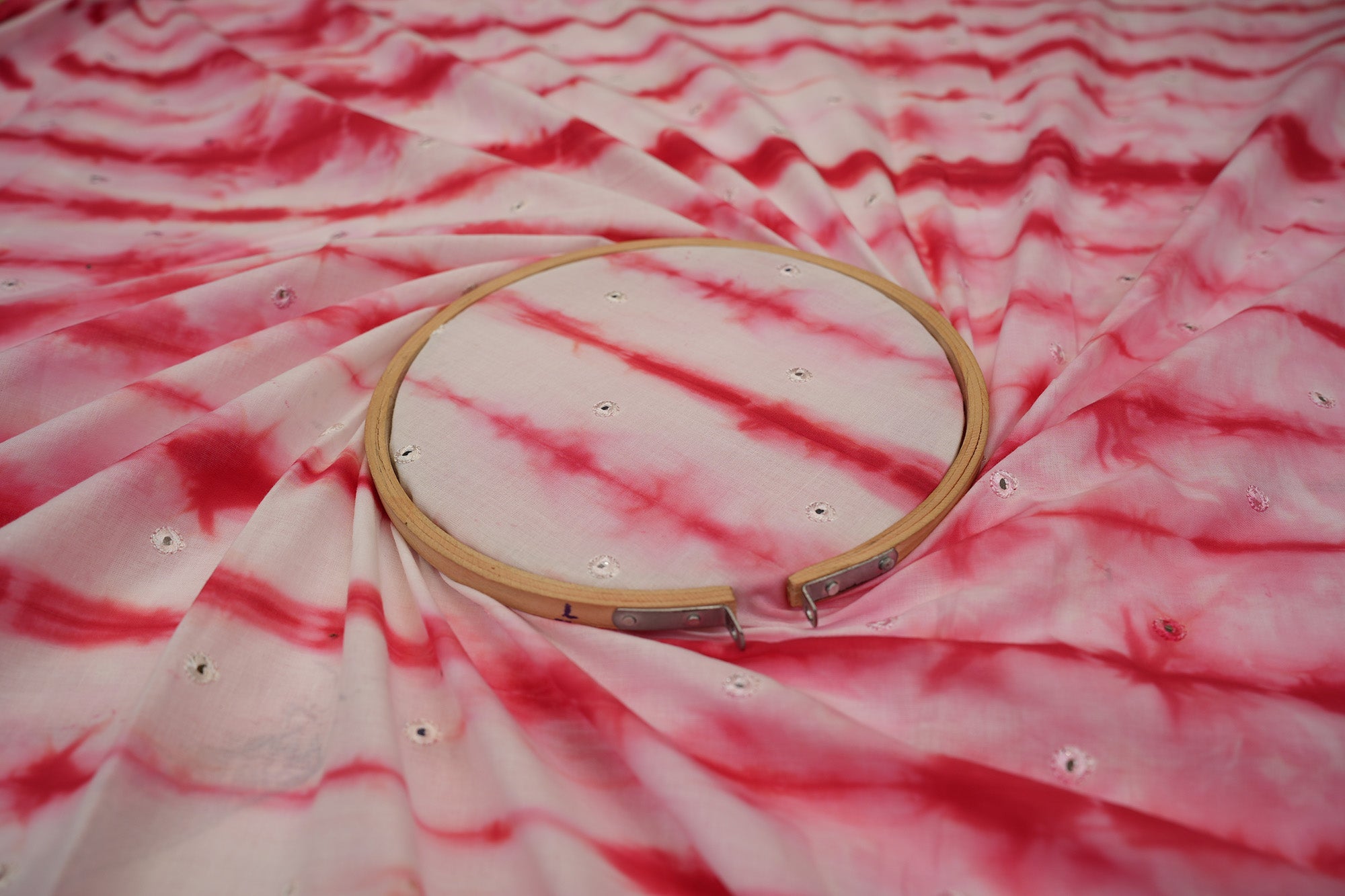 White & Peach Abstract Cotton Hakoba Chikan Fabric
