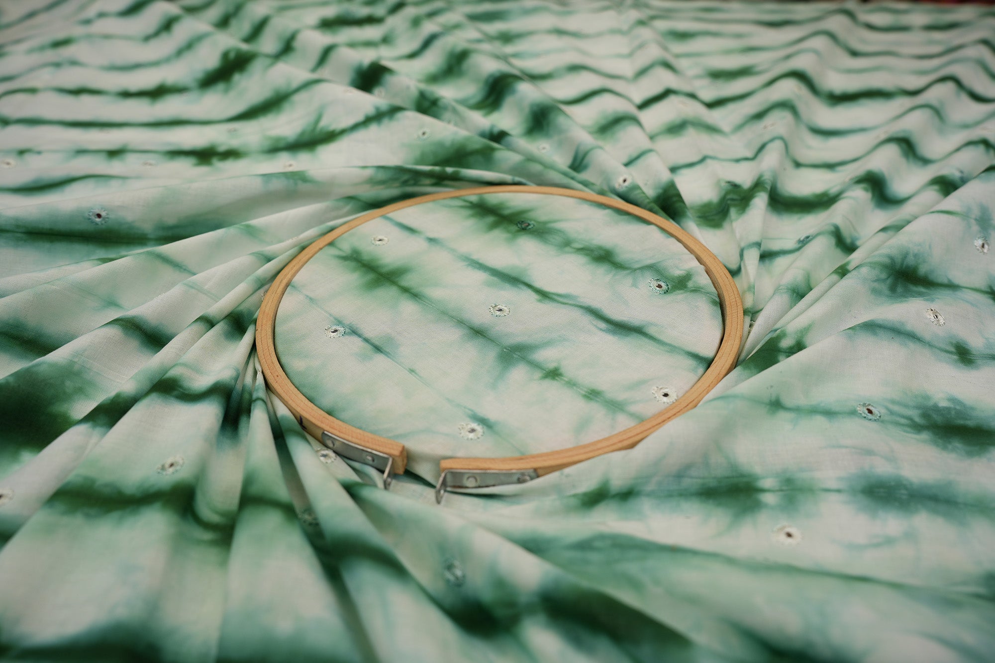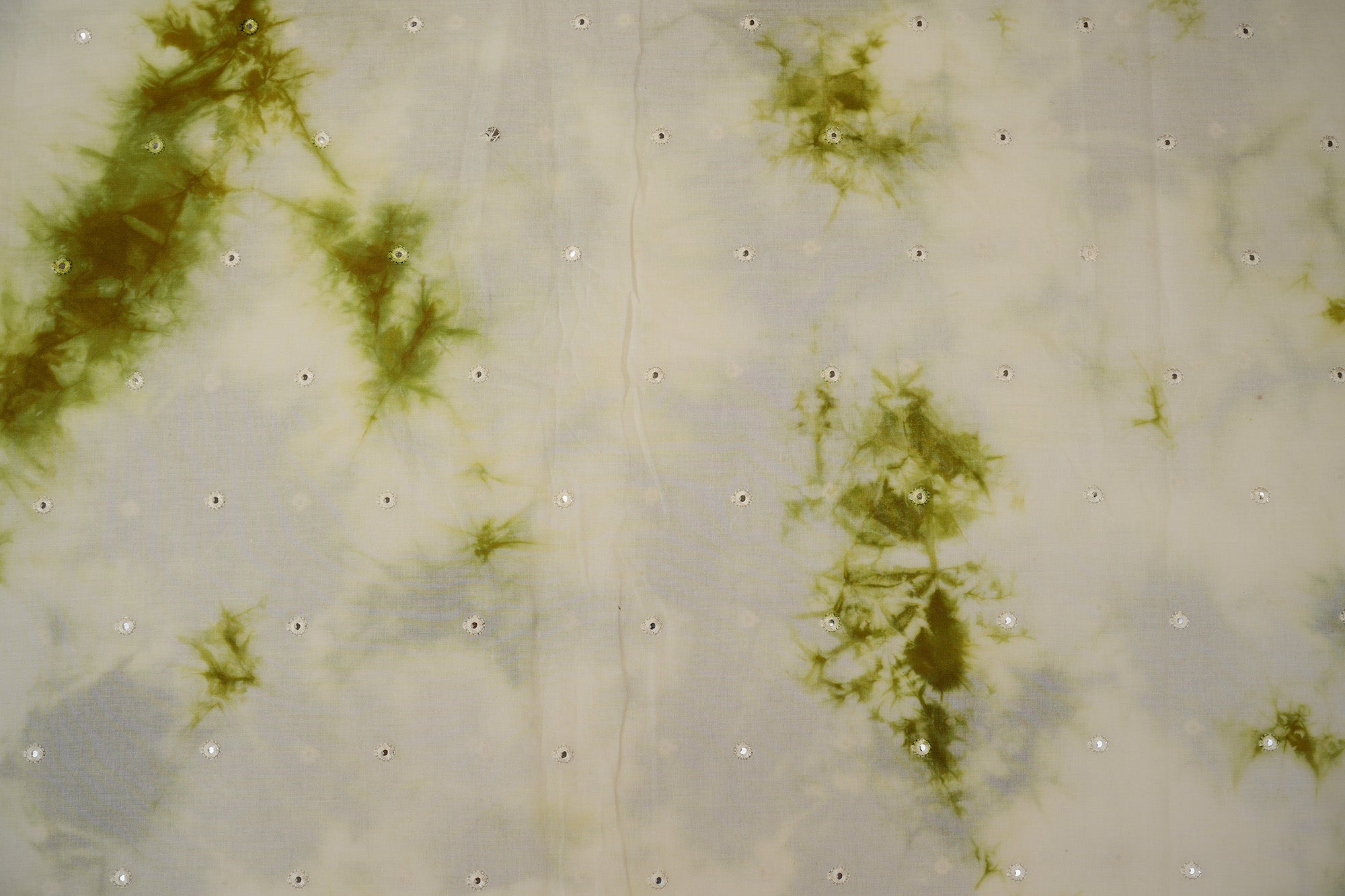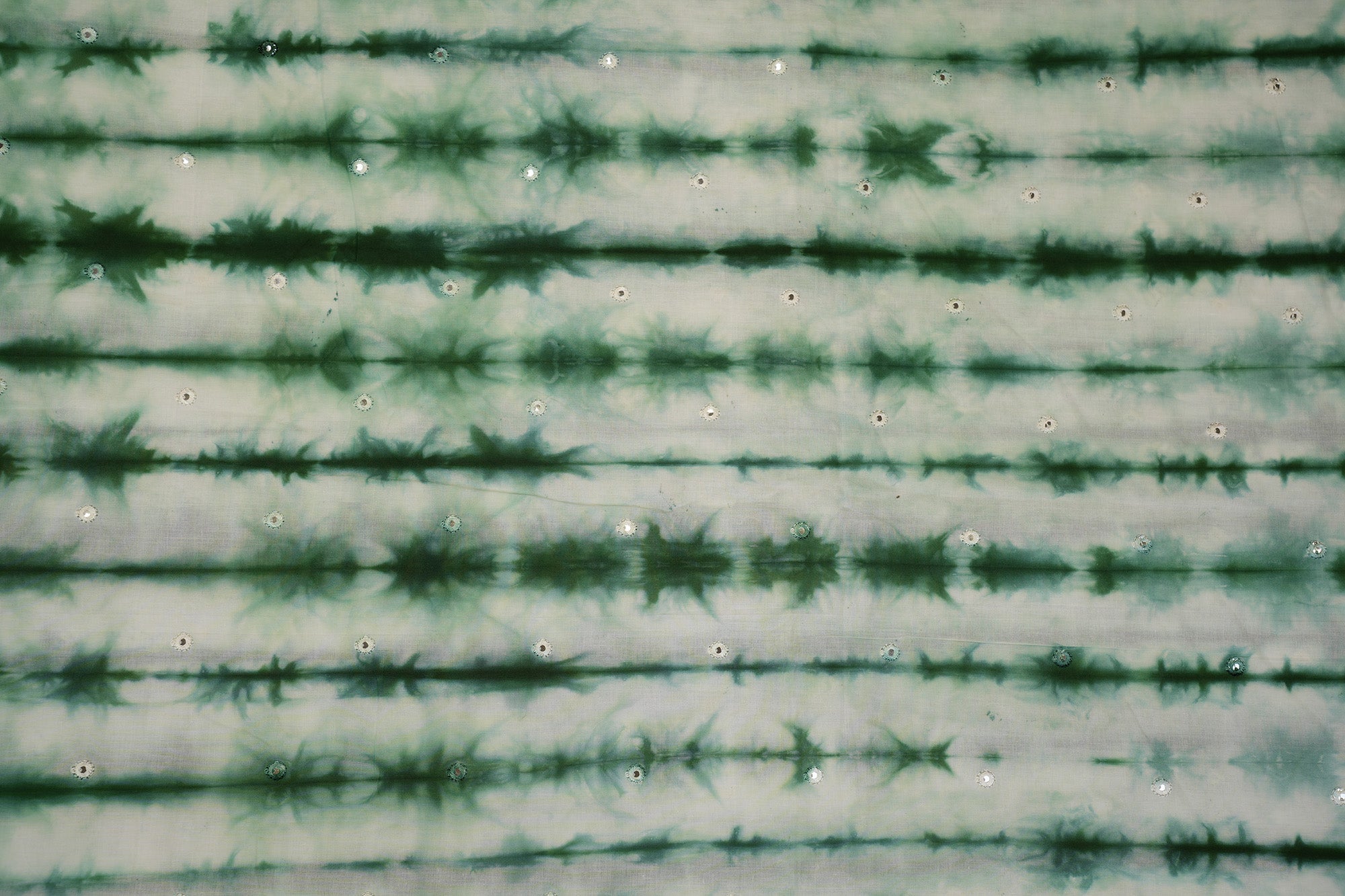 Sky Blue Green Abstract Pure Chanderi Fabric