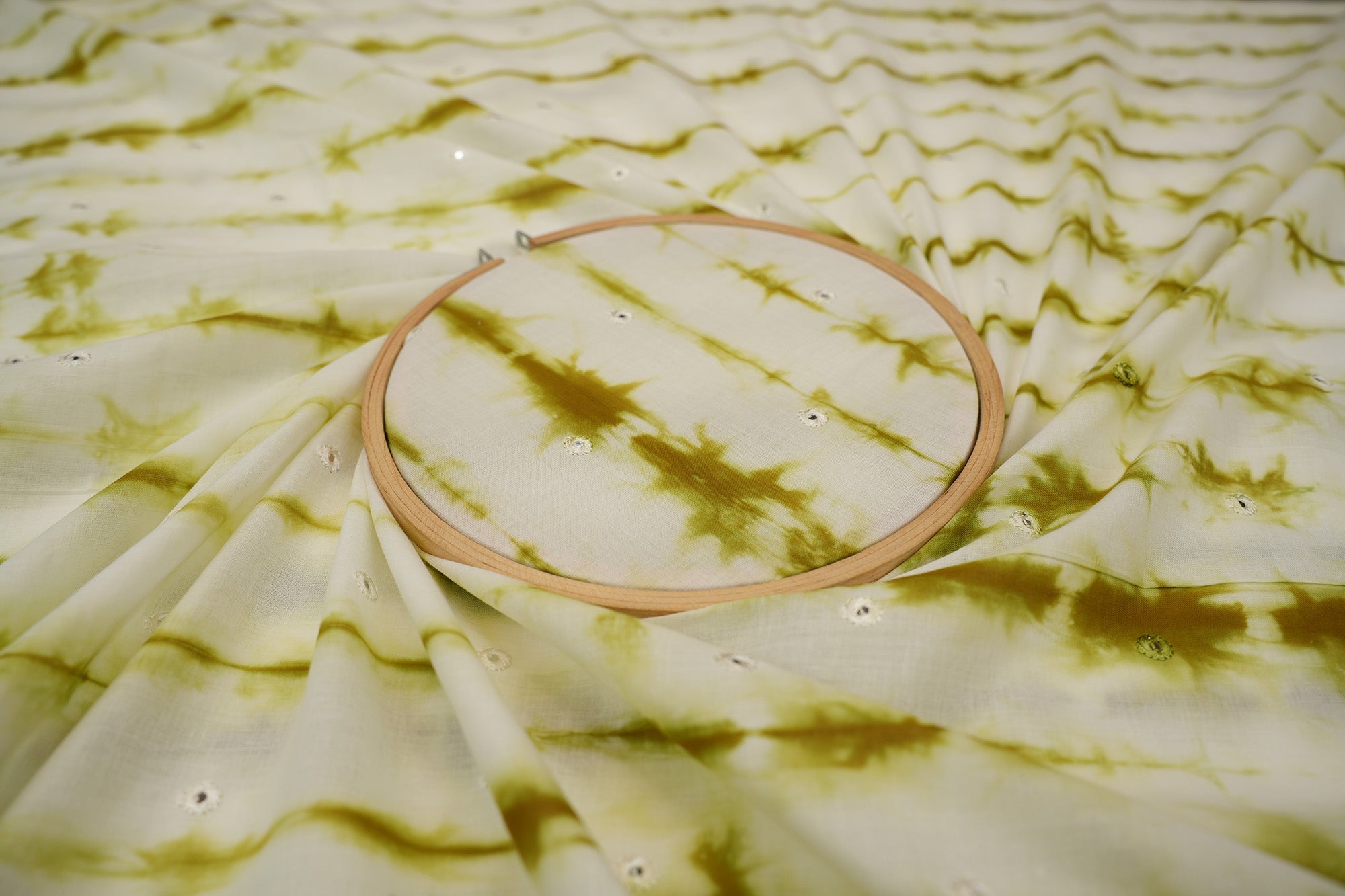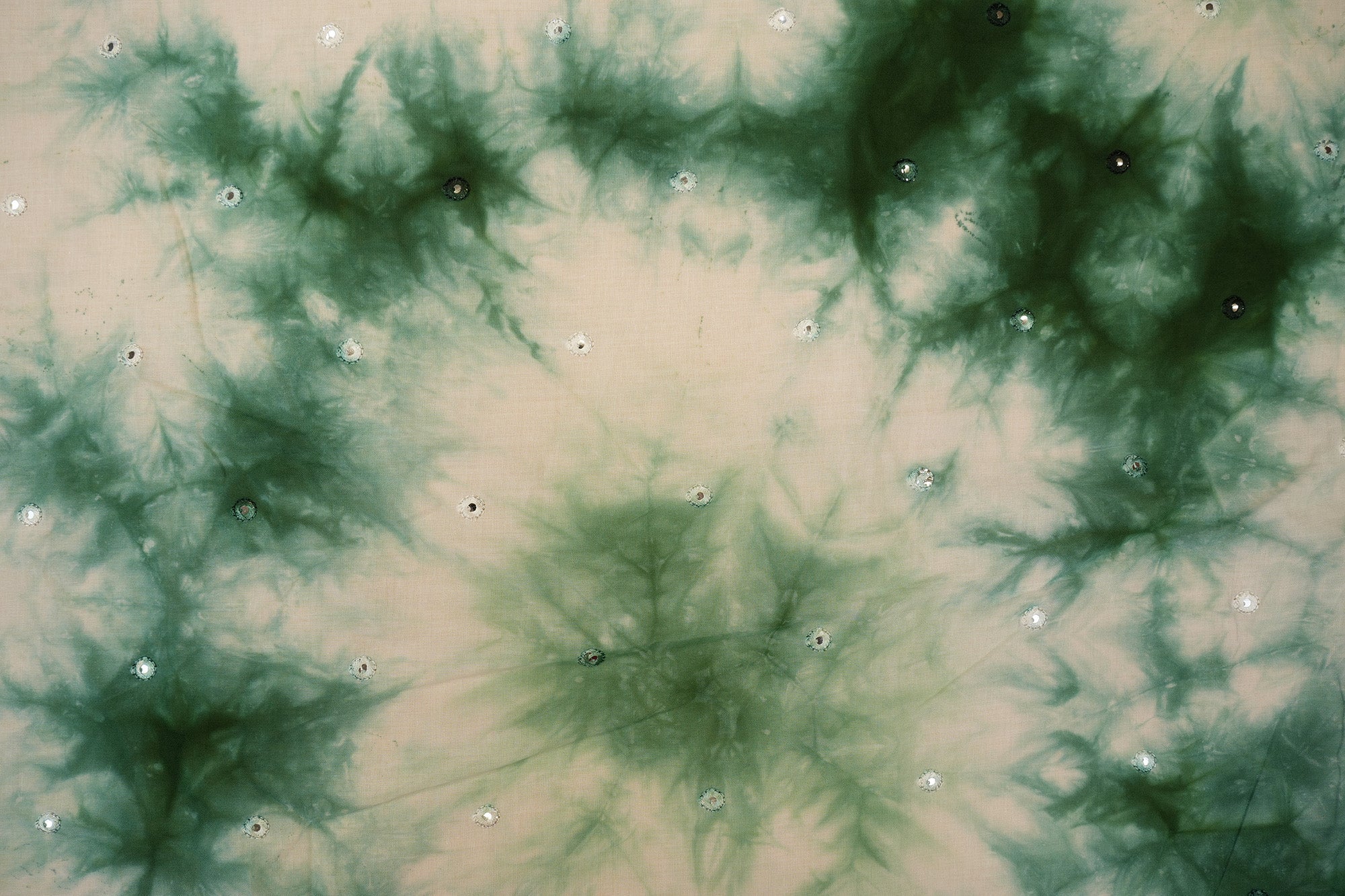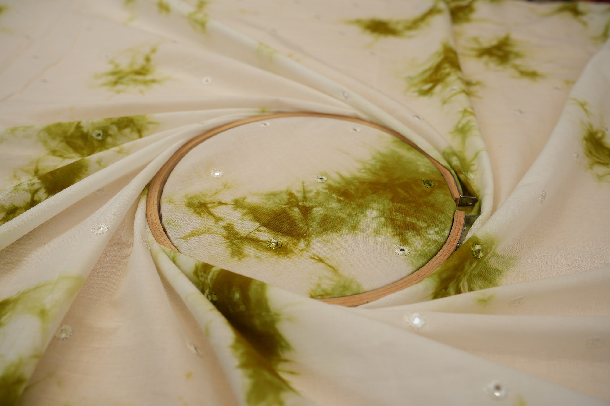 Sky Blue Green Abstract Pure Chanderi Fabric