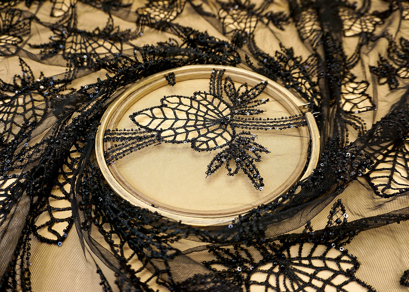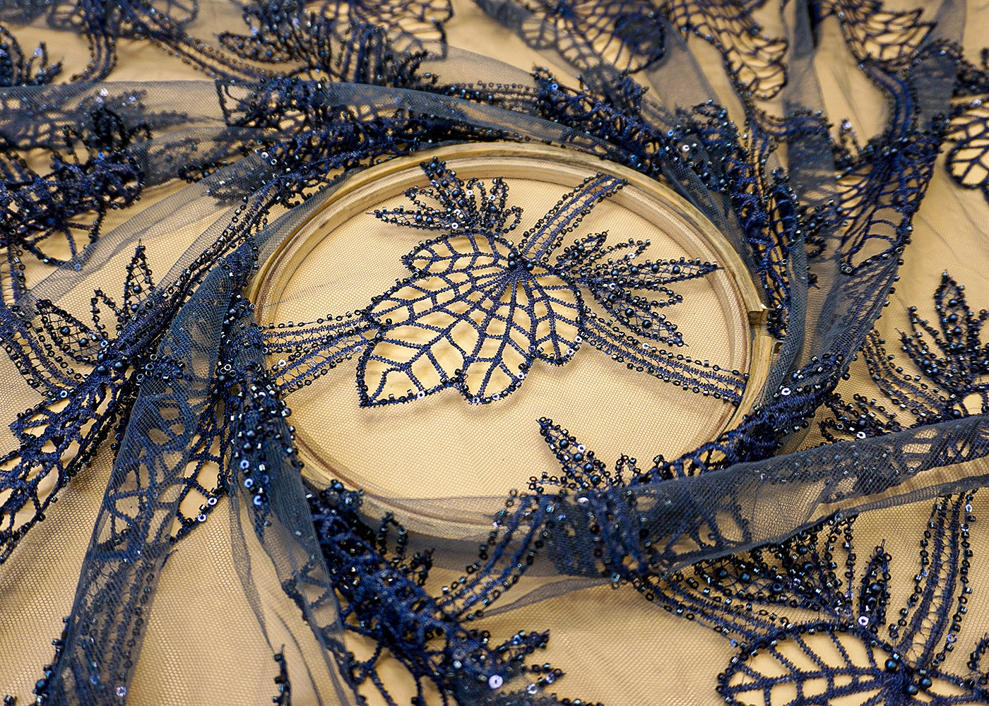Rama Green Floral Crush Tissue Embroidery Fabric