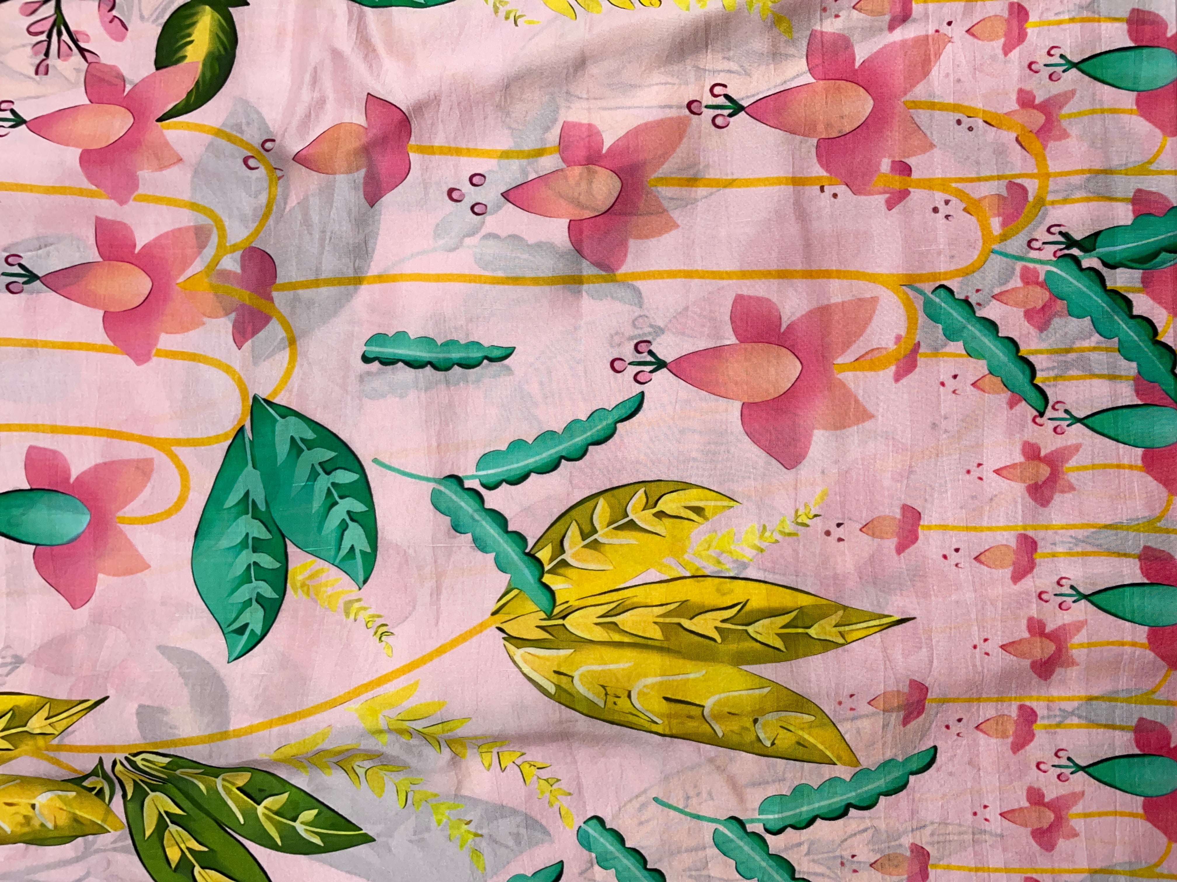 Baby Pink Floral Pure Dupion Silk Print Fabric