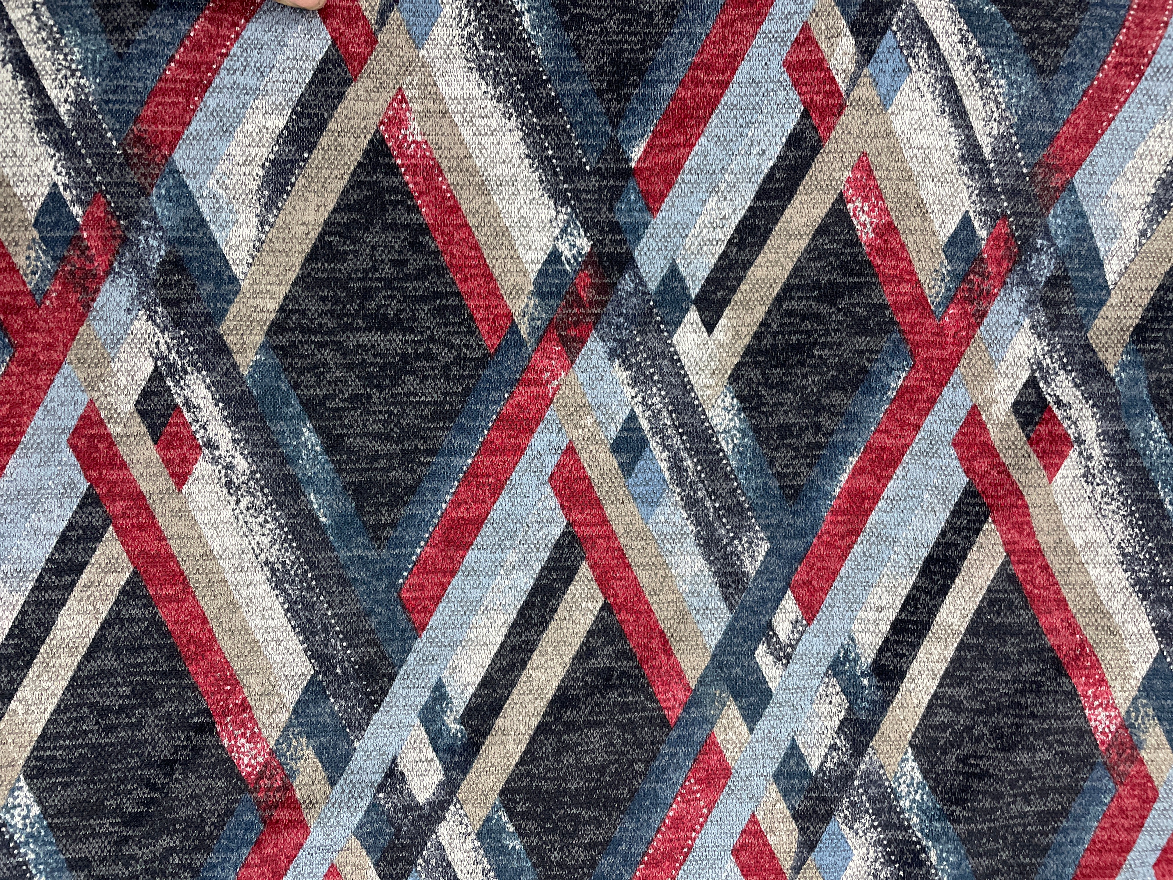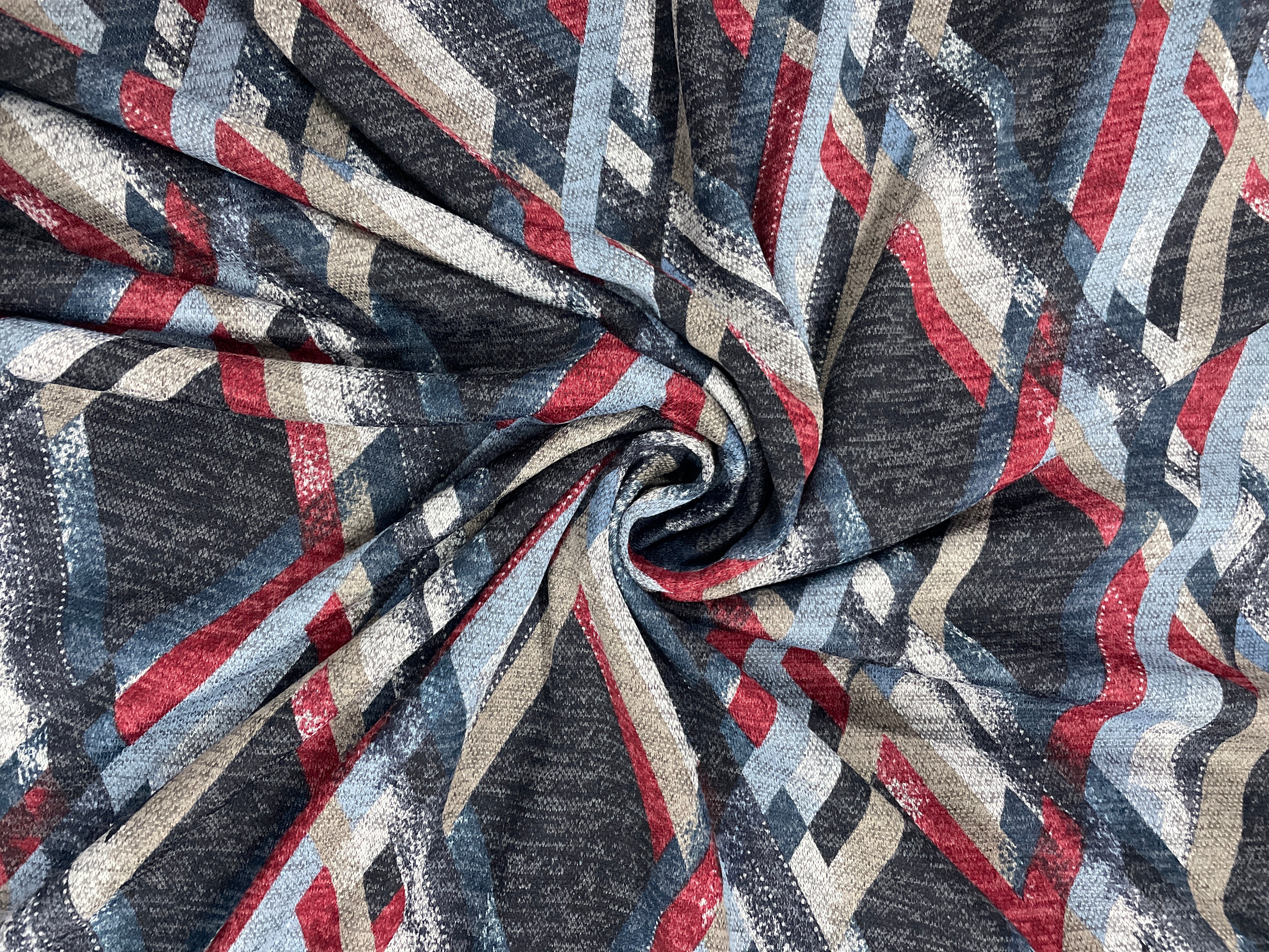 Red Multicolor Chevron Floral Karachi Lycra Fabric