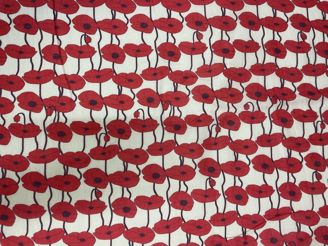 White Red Abstract Pure Chanderi Fabric
